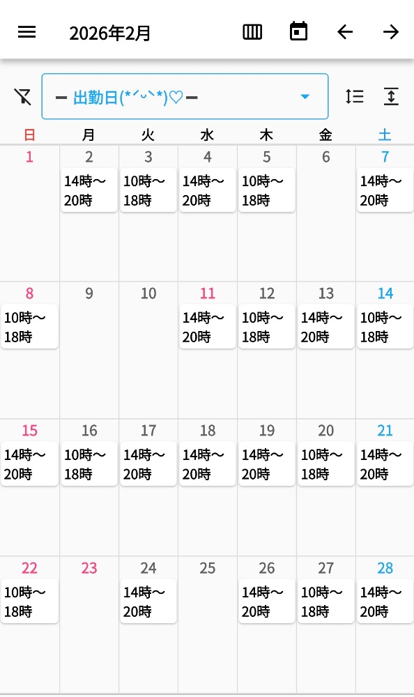 ※毎月、月初に出勤カレンダーをお知らせさせていただきます。